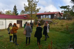 Etnologer, folklorister och kulturanalytiker från Åbo Akademi lyssnar intresserat till folkloristen Bryndis berättelse om hur man tog hänsyn till det ”gömda folket” när hospitalet i Hafnarfjördur byggdes. Foto: Johan Bergman.
