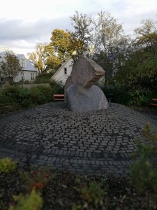 Intill Reykjavík Maritime Museum står ett monument som jag uppfattar som det mest moderna jag sett på hela min resa. Det består av tre stycken rätblock, liknande pelare. Två av dessa är i sten och det ena blocket är rundat upp till medan det andra blir smalare upptill. I mitten finns ytterligare ett smalt rätblock i metall. På platån som konstverket står på finns namn inristade. Detta monument är tilldelat EVE Online, ett online science fiction-spel som nått stor framgång. Namnen som är ingraverade på monumentet representerar alla medlemmar som var aktiva när monumentet restes. När jag såg monumentet visste jag inte någonting om dess bakgrundshistoria och jag hade svårt att förstå budskapet med monumentet, men inom en given kontext fungerar monumentet som en brygga mellan verkligheten och den virtuella världen, som blir allt mer populär och aktuellt. Salka berättade att hon inte varit medveten om monumentet förrän jag frågade om det.