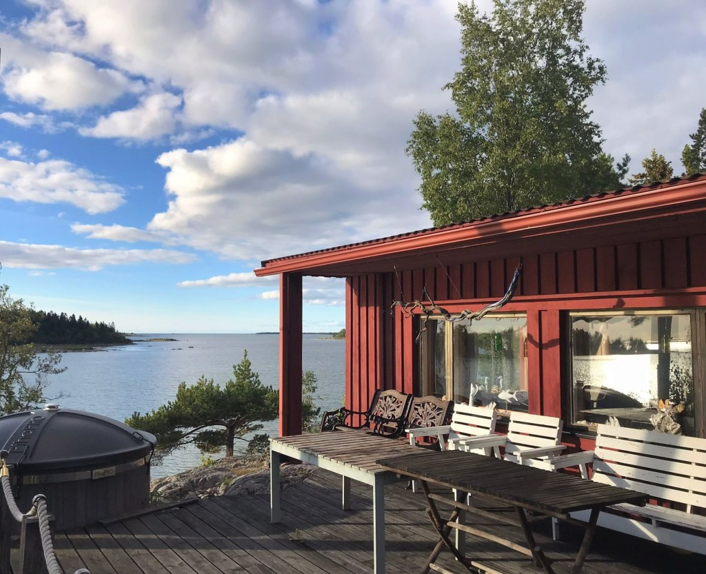 På skären läser vi, simmar, spelar spel, grejar med båt eller windsurfingbrädan. Jag renoverar, målar och försöker hitta på lösningar i pappas anda. Det är svårt att göra ändringar då pappas hand syns i precis allting. (IF 2021/4:28)