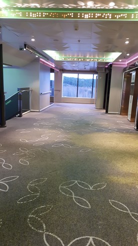 Medan man på de äldre båtarna kunde ta kontroll över båtens utrymmen på sätt som kanske inte var förväntade, verkar Grace konstruerad med tanke att styra folket så naturligt som möjligt till mer ”acceptabla” viloplatser. Som redan nämnts dras människor till dagsljus (Ahmadi 2019), alltså är det viktigt att centrera utrymmen såsom café, bar och restaurang nära det centrala fönstret med sina installationer, medan trappuppgången är smal och utan lockande fönsterplatser. På samma sätt kändes Glory som nästa steg i evolutionen, nu hade vi rört oss från att bara styra kunderna till nya sittplatser till att designa om båten för lyx i stället för bekväm naturlig gruppering. Detta i motsats till ett av vad Håkansson, Sund och Svanberg i sin kandidatavhandling kallar för de fem kärnprinciperna: effektivitet, beräknelighet, förutsägbarhet, kontroll och ”rationalitetens irrationalitet” (2007, 14). En stor del av upplevelsen på färjan är att man kan förutsäga hurdan resa man kommer att få. I detta ingår också designen av rummet, vilket flera av våra reskamrater beskrev negativt i ord som ”råddigt” och ”trångt”.